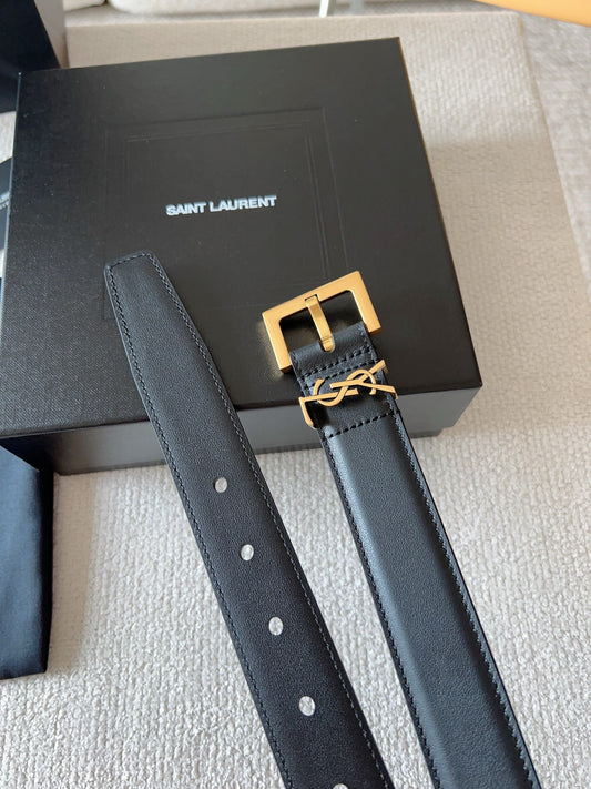 • Black Leather Belt with Gold Buckle Width 3.8cm
