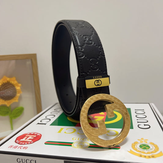 Black Leather Belt with Gold Buckle Width 3.8cm