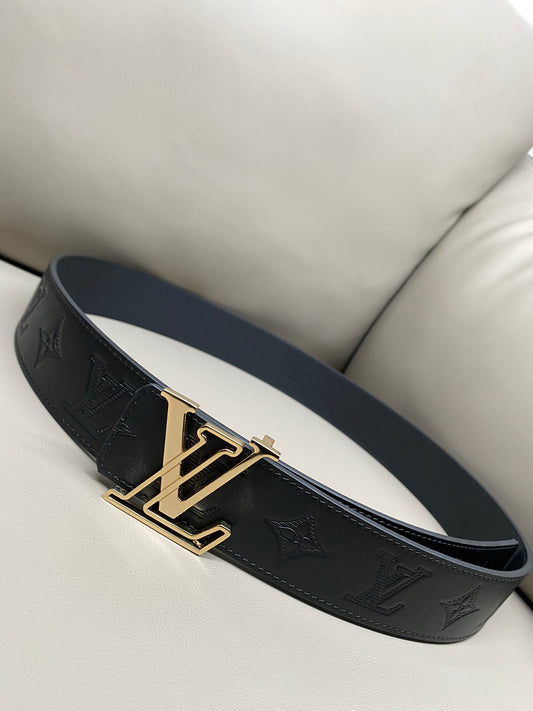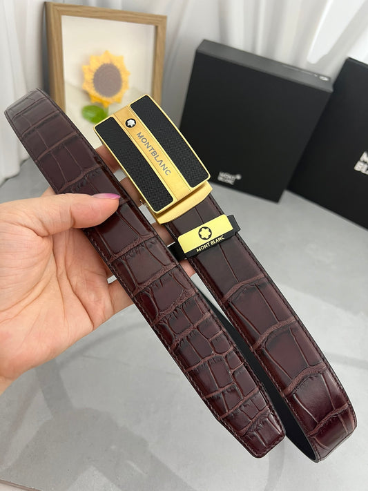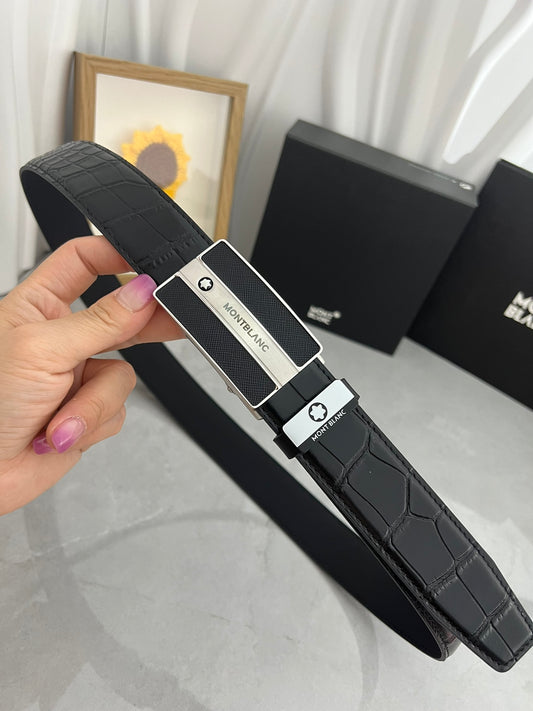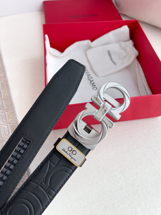Premium Leather Belt with Textured Buckle width 3.5cm