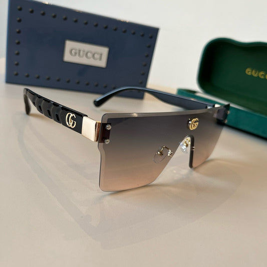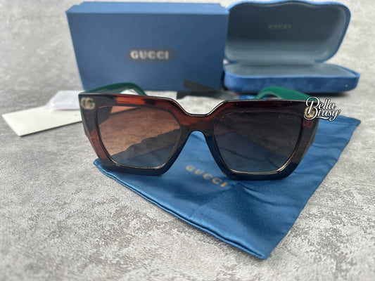 Oversized Square Sunglasses – Blue Gradient with Gold Logo