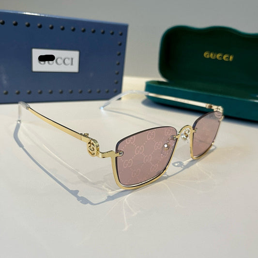 Gold Rim Square Sunglasses with Pink Patterned Lenses