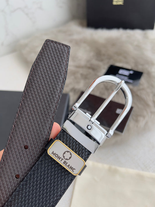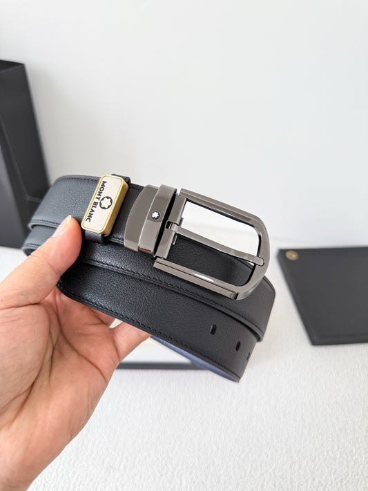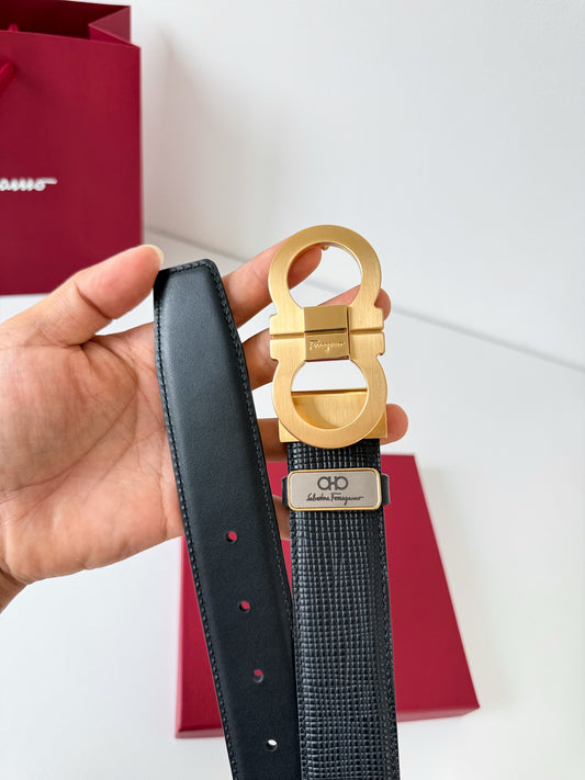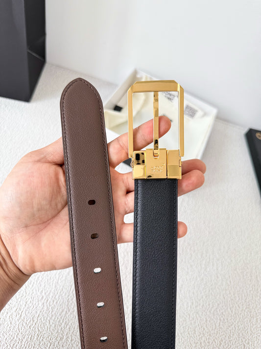 Wendbarer Herren-Ledergürtel mit mattgoldener Schnalle, Breite 3,5 cm