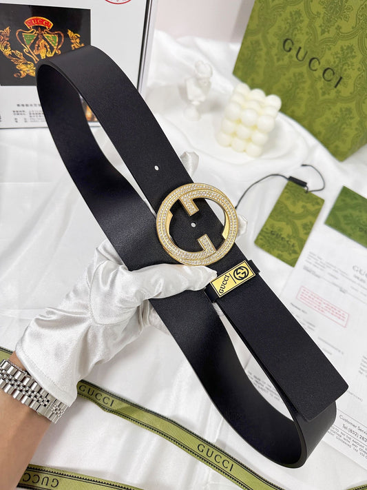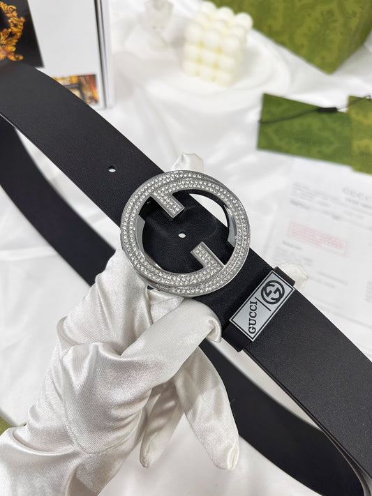 Eleganter schwarzer Ledergürtel mit kristallbesetzter Schnalle