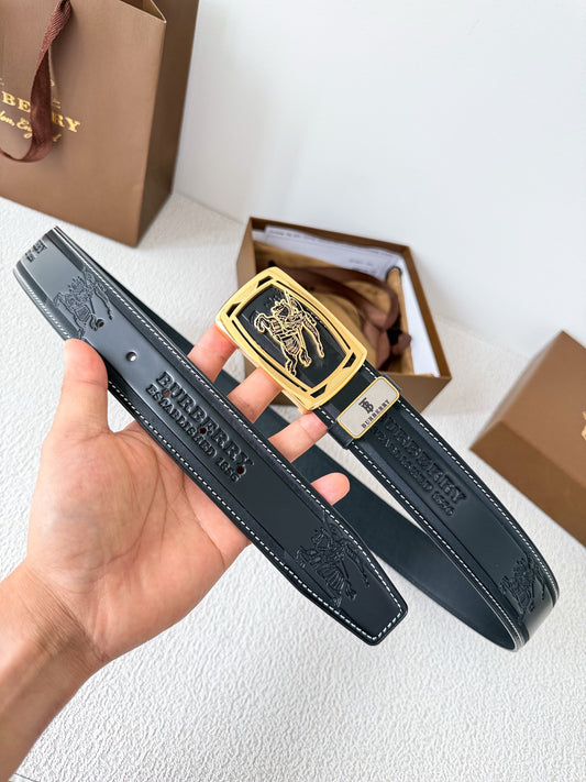 Herren-Ledergürtel mit goldener Schnalle mit Pferdeprägung