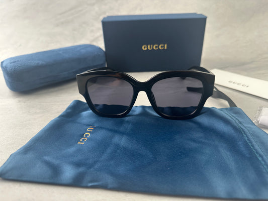 Elegante schwarze Cat-Eye-Sonnenbrille mit GG-Muster