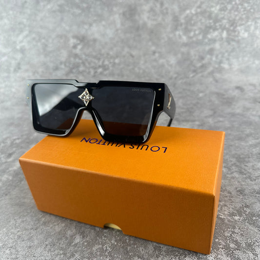 Luxuriöse, übergroße, quadratische Sonnenbrille – Schwarzer Rahmen mit goldenen Details