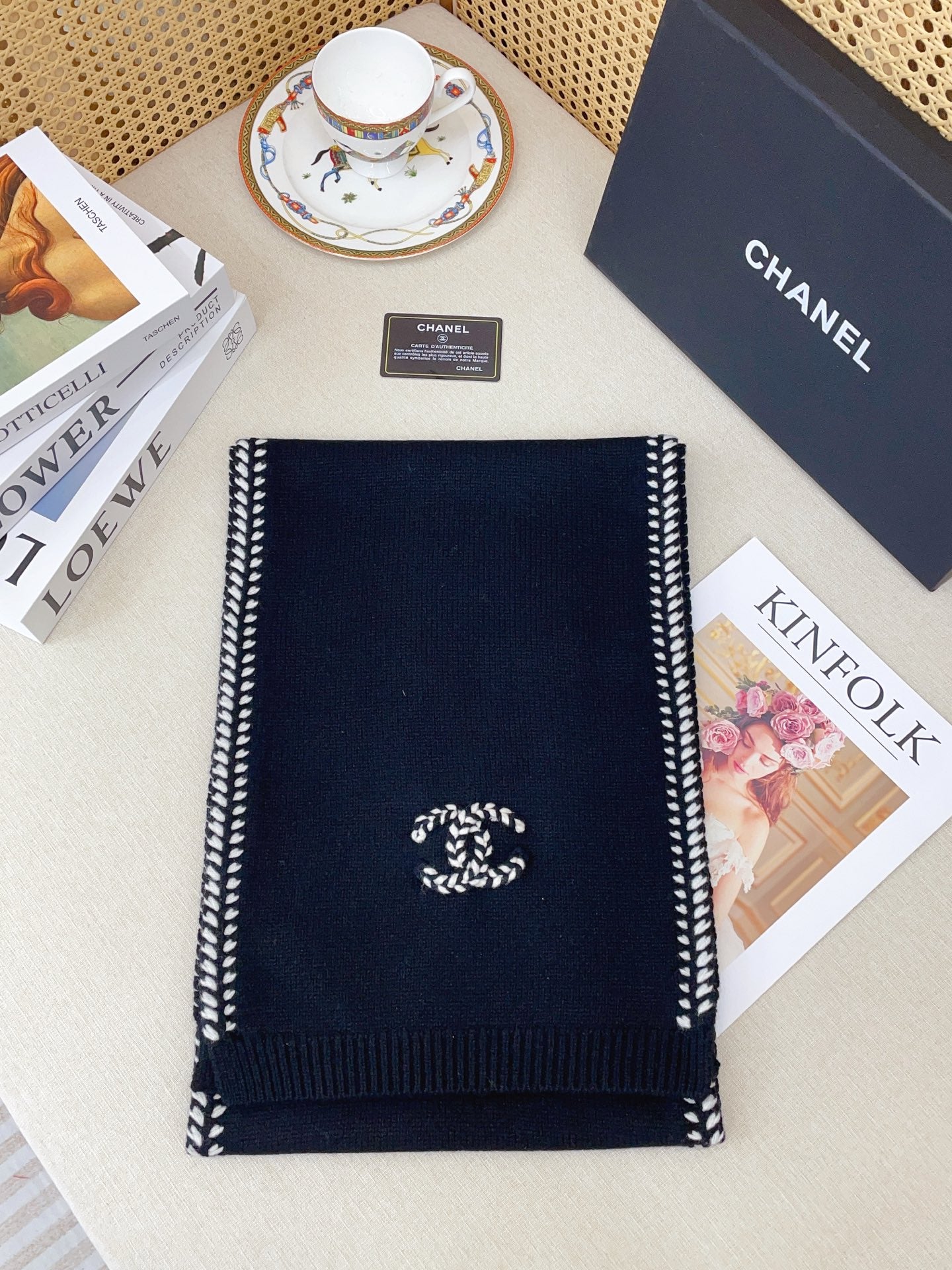 Black Knit Wool & Cashmere Scarf
