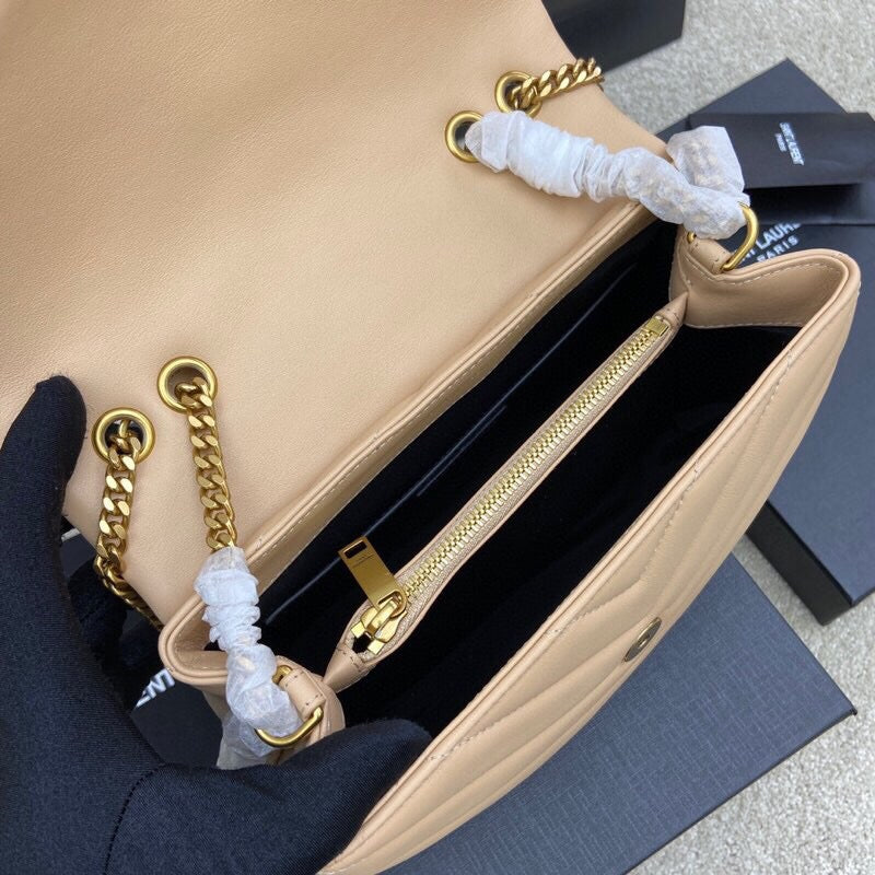 πŸ’Ž Soft Beige Chevron-Stitch Leather Chain Bag 688019169