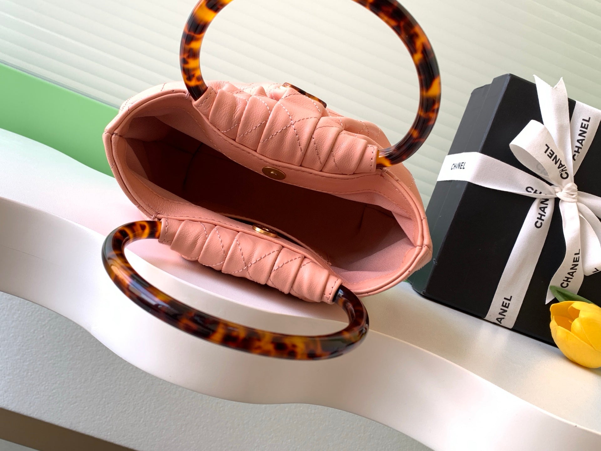 26C Early Spring Collection Lambskin Handbag with Tortoiseshell Handles