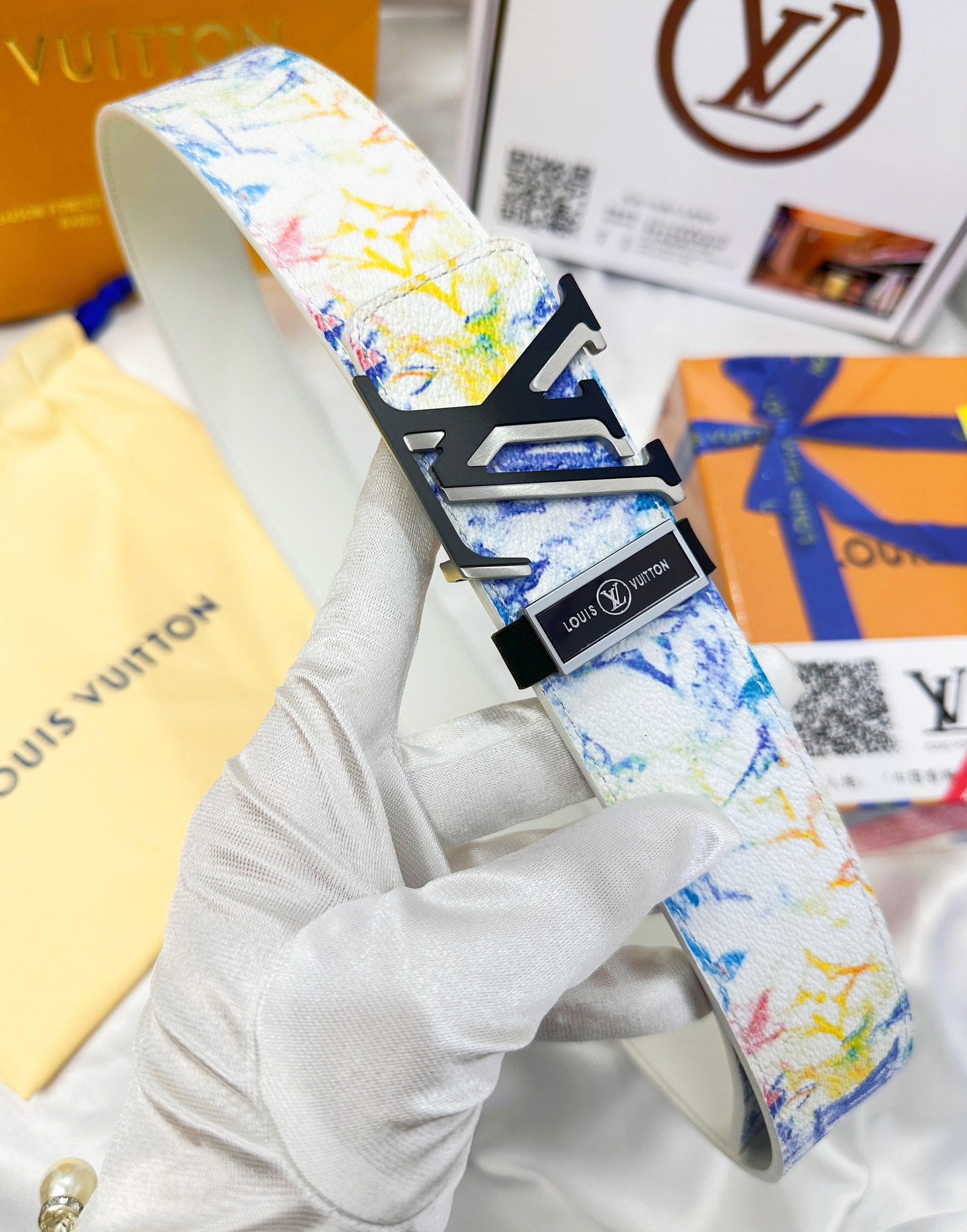 Brighten up your wardrobe with this vibrant belt featuring a colorful monogram print.