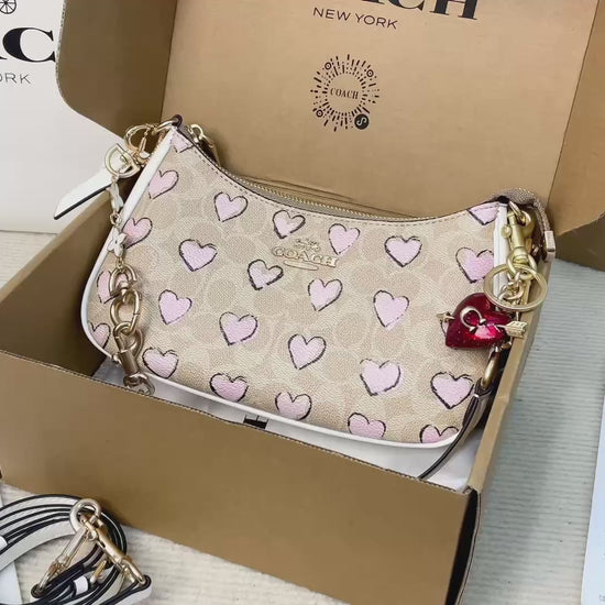 This limited-edition shoulder bag features iconic signature canvas decorated with charming pink heart prints — a perfect blend of classic and playful. With refined leather trim, gold-tone hardware, and a detachable crossbody strap, it’s versatile enough to be worn as a shoulder or crossbody bag.