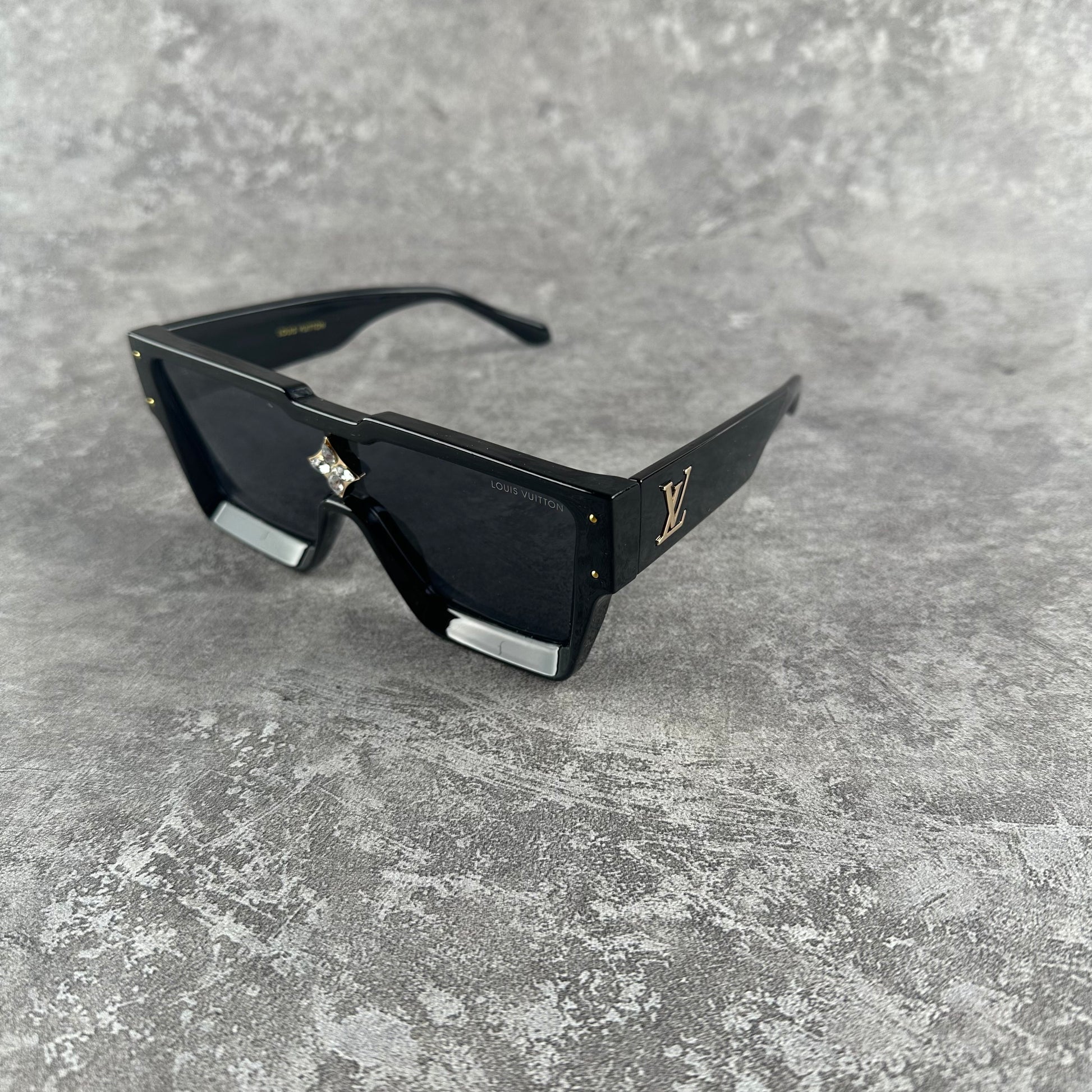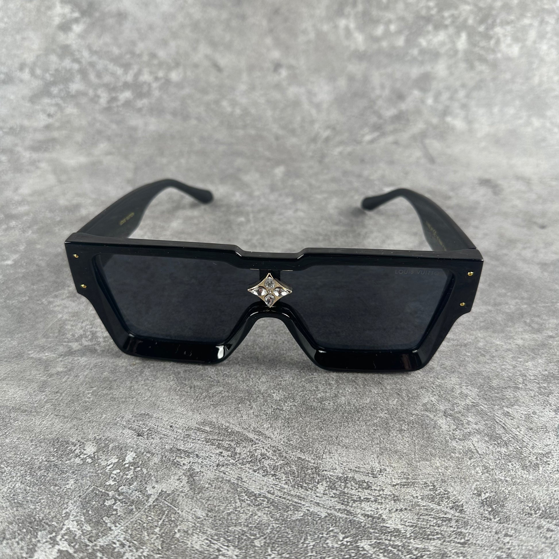 The Cyclone sunglasses are a modern take on an iconic style. This style features an exaggerated frame with angular lines and a deep beveled edge.