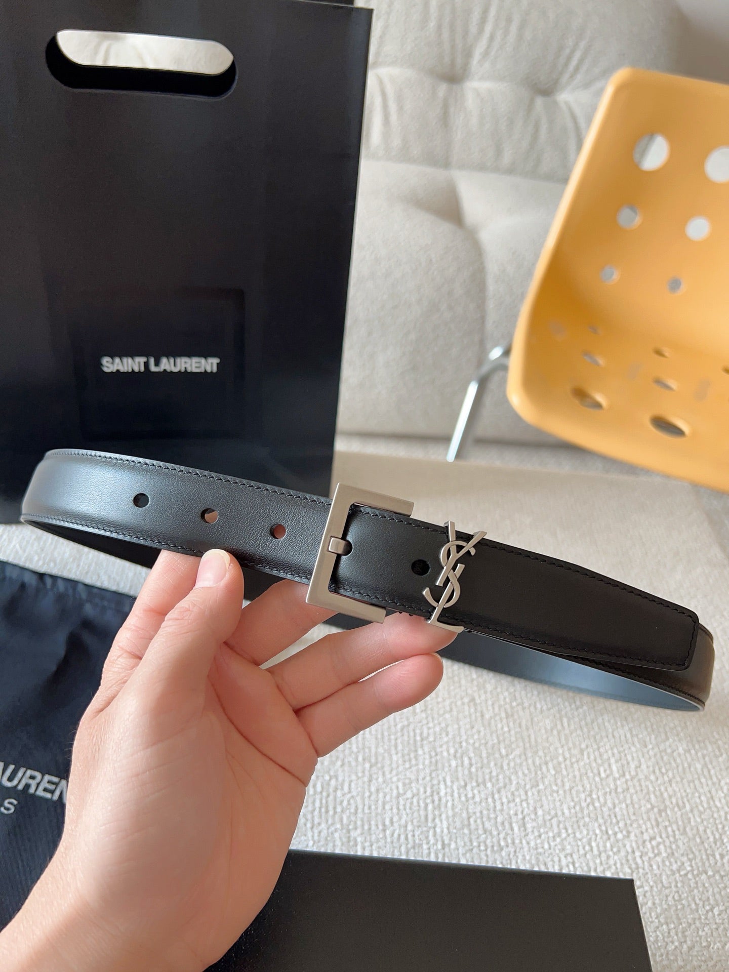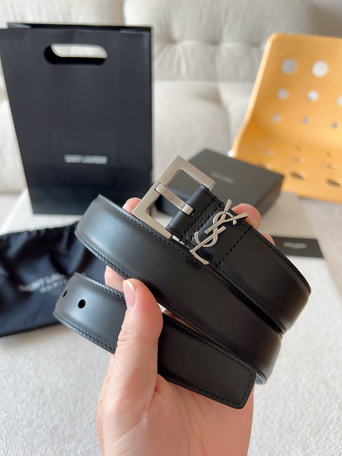 It features a black leather strap paired with a silver - toned buckle and the iconic logo, exuding elegance and luxury